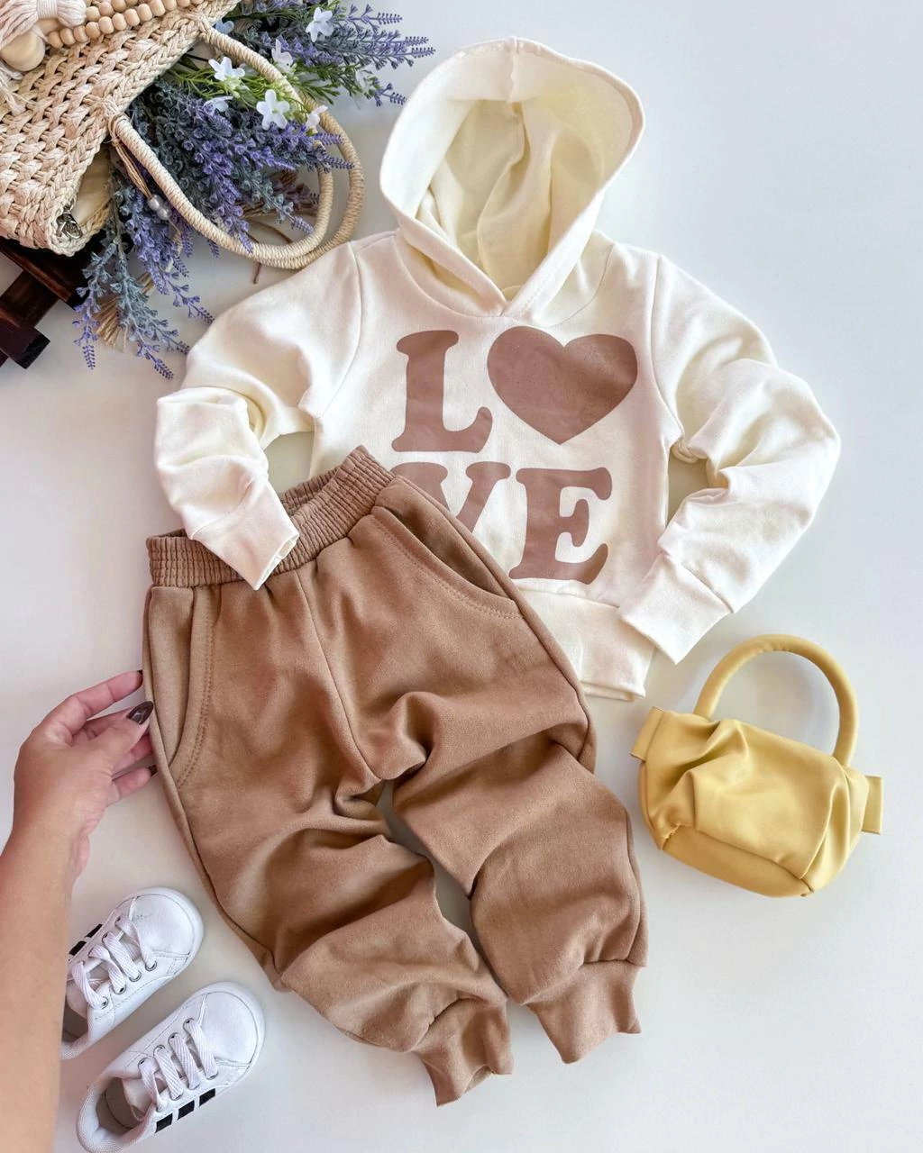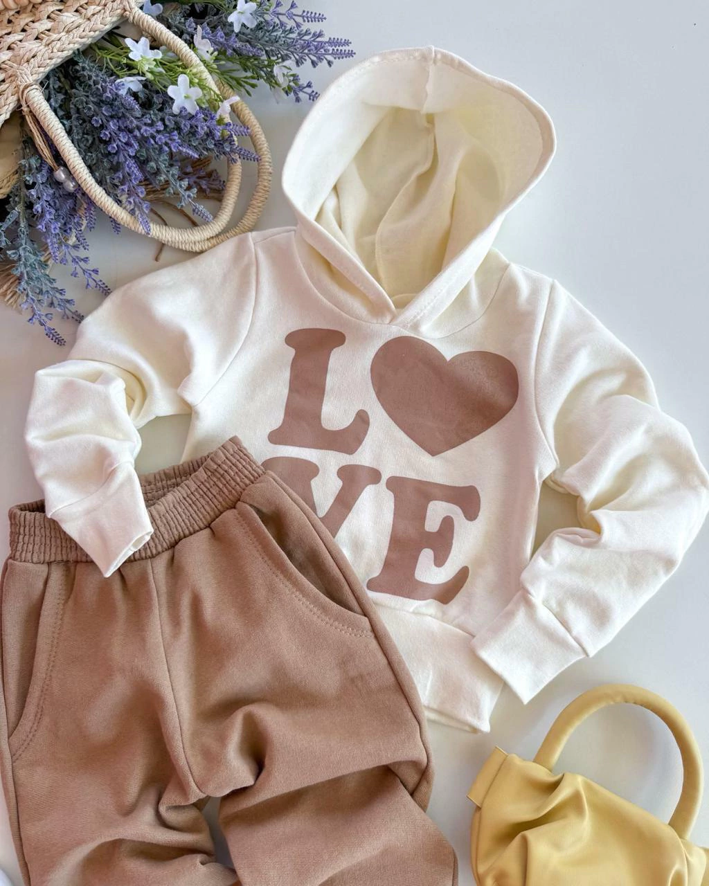 🧥 Blusa off-white com capuz e estampa “LOVE” em tom terroso – cheia de charme!