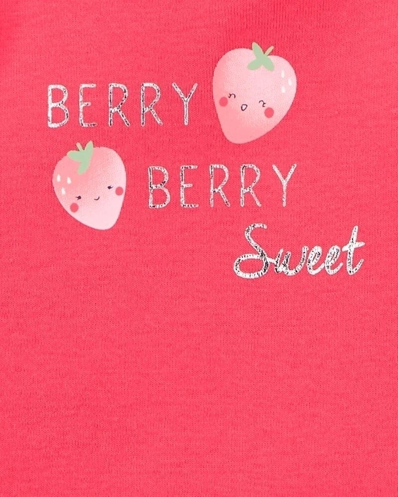 • Trio Carter´s conjunto e romper é opção para qualquer ocasião, aplique bordado, estampa digital moranguinhos, fechamento com botões de pressão.